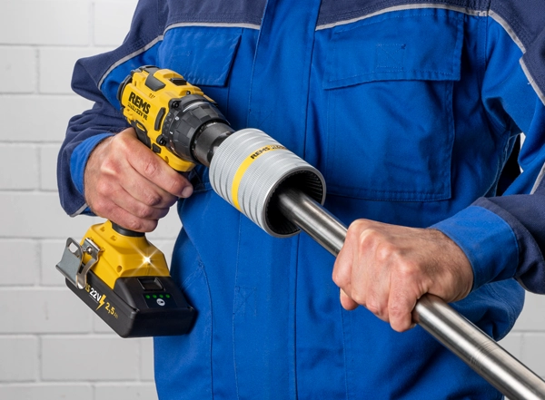 Escariador exterior e interior de tubos, para tubos Ø 10 - 54 mm, Ø 1/2 - 2 1/8". Para accionamiento eléctrico también con las taladradoras REM Helix 22V VE y otros taladros atornilladores (nº de revoluciones ≤ 300 min-1), con las máquinas cortatubos REMS Cento (modelos fabricados a partir de 09/2011), REMS Cento 22V o con las sierras circulares para tubos REMS Turbo Cu-INOX (modelos fabricados a partir de 09/2011).